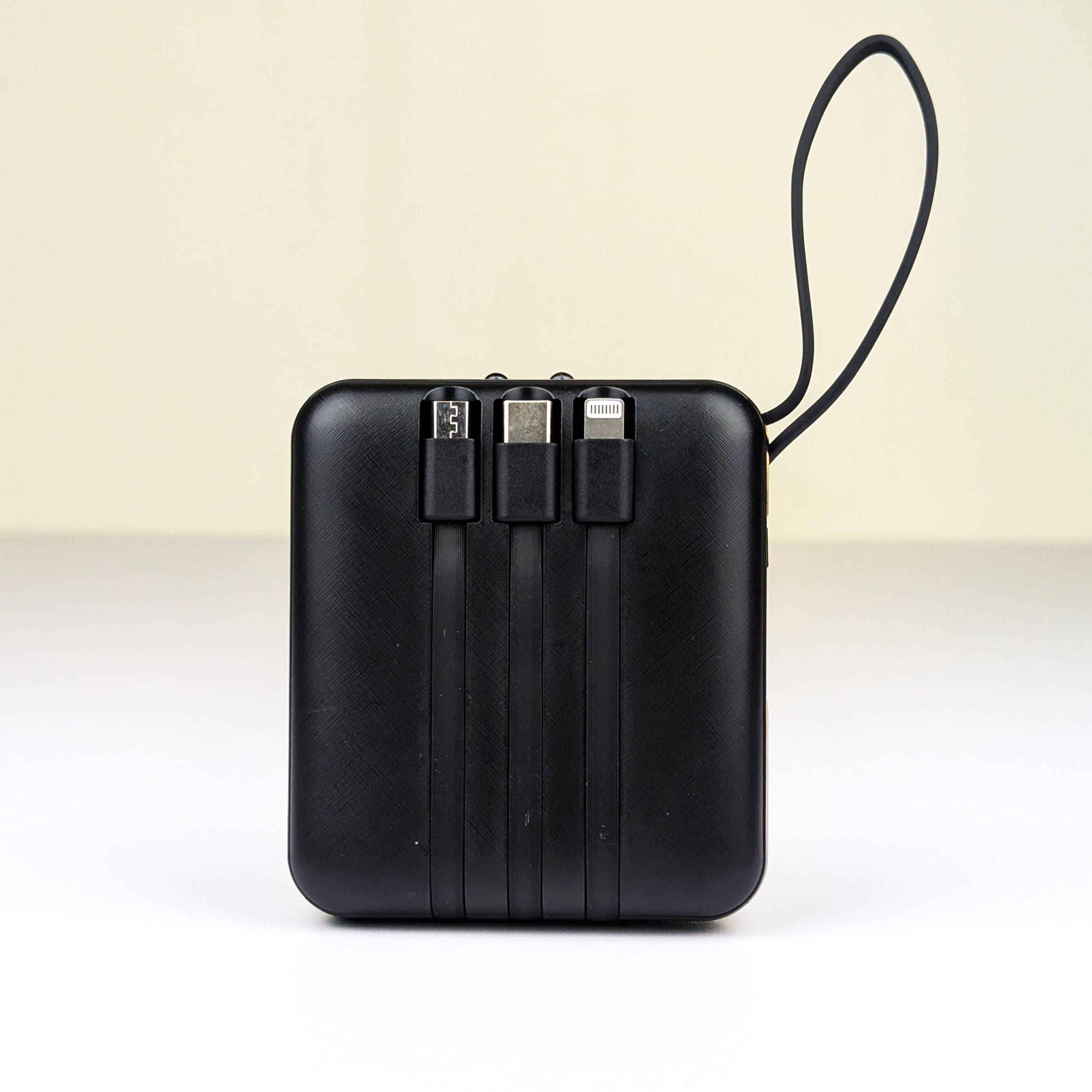 - ৪-ইন-১ বিল্ট-ইন ক্যাবল: আপনাকে আর আলাদা করে ক্যাবল বহন করতে হবে না। এতে থাকা মাইক্রো-ইউএসবি, টাইপ-সি, আইফোন লাইটনিং এবং ইউএসবি ক্যাবল দিয়ে যেকোনো ডিভাইস চার্জ করা সম্ভব।