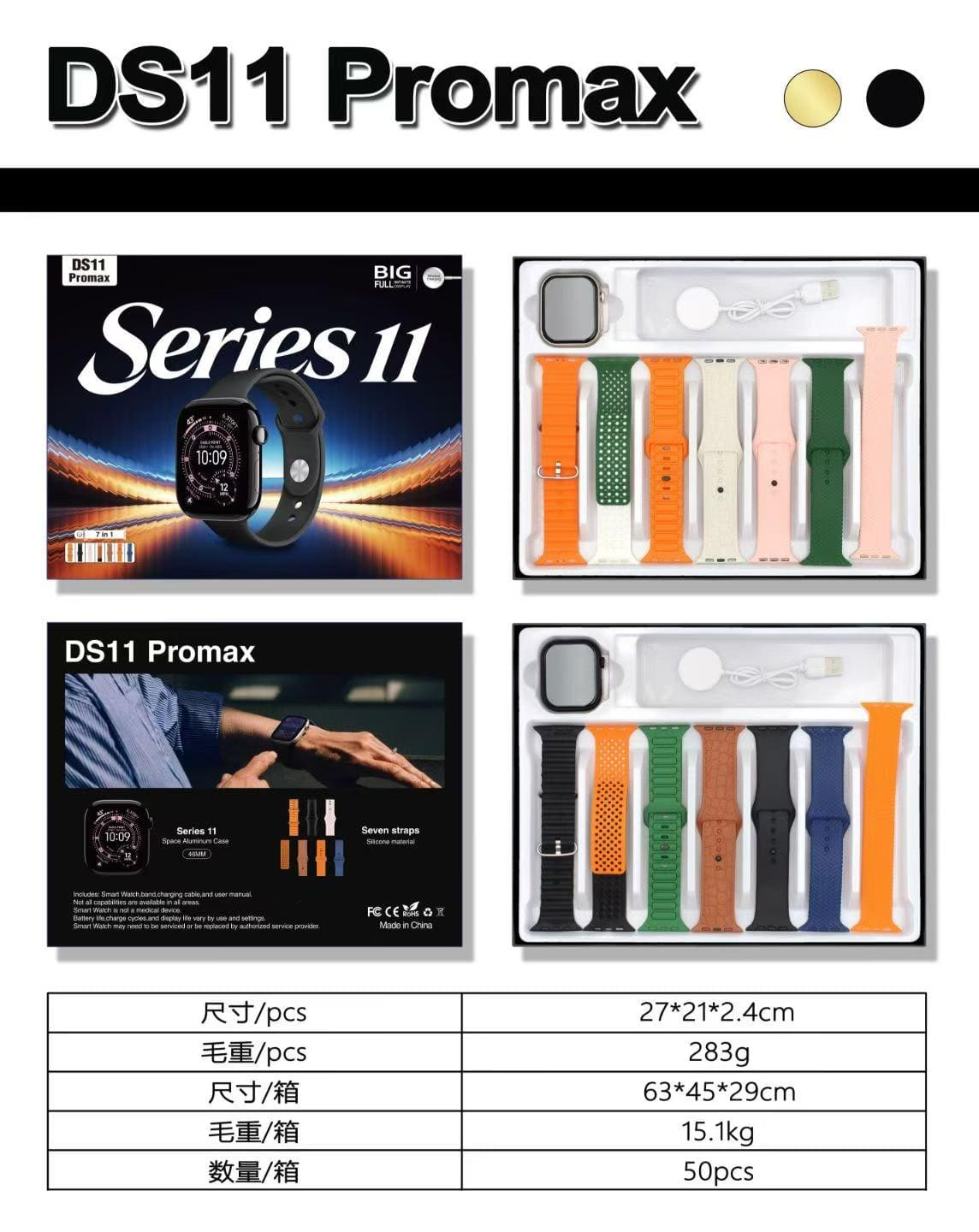 ১টি DS11 Promax স্মার্টওয়াচ, ৭টি প্রিমিয়াম স্ট্র্যাপ এবং ১টি ম্যাগনেটিক চার্জার।