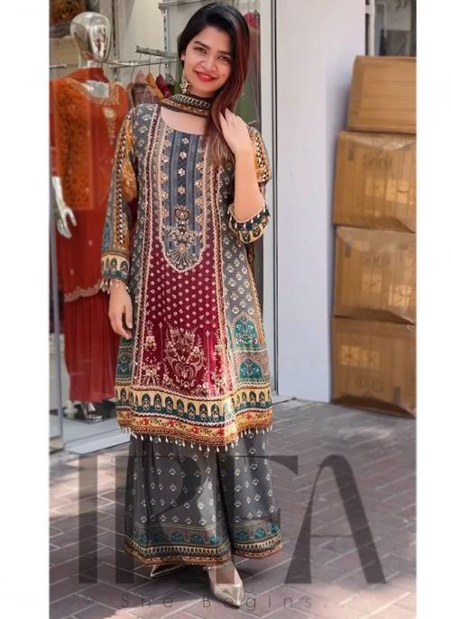 Premium Digital Printed Readymade Three Piece with Lace Work Detail